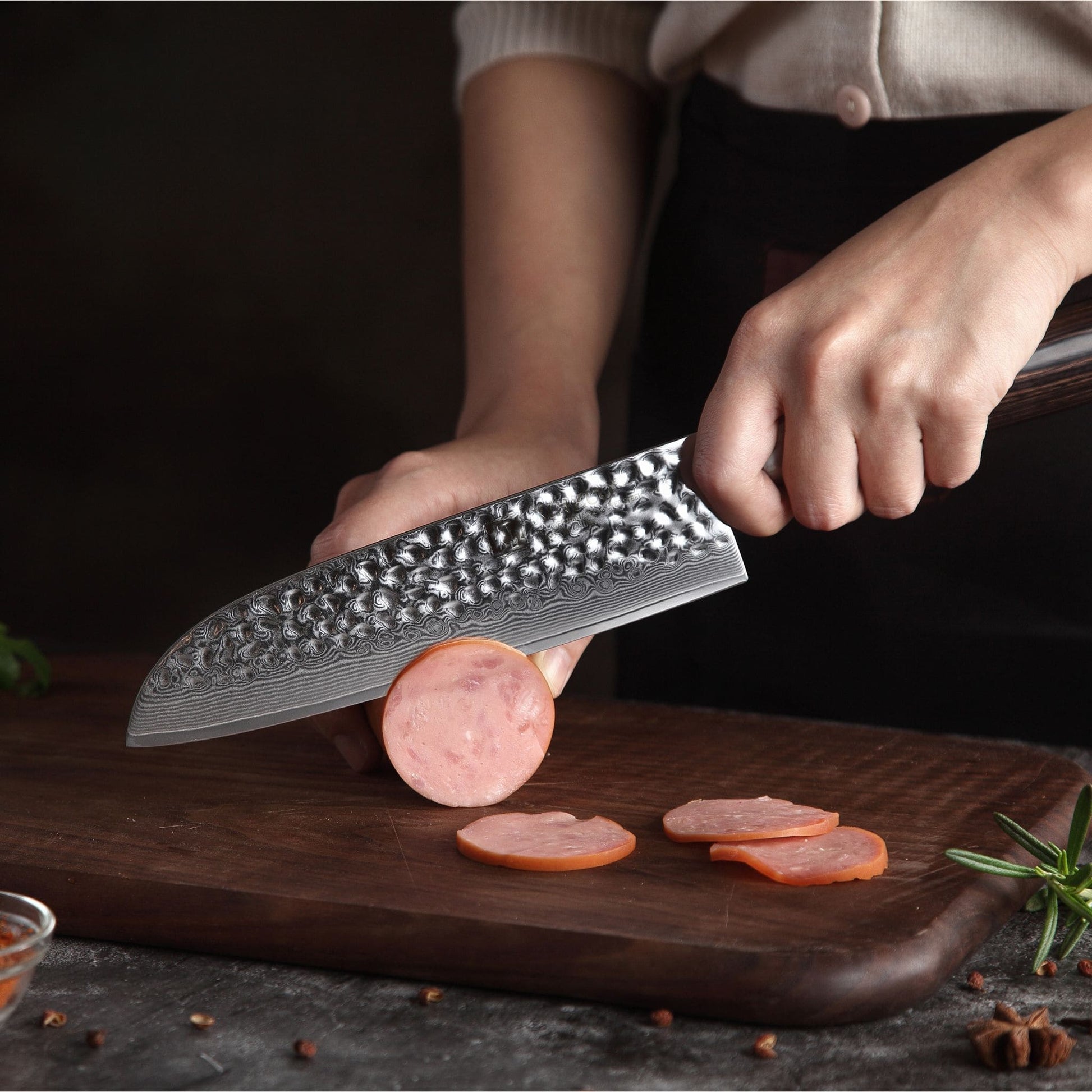Das Santoku ist für Gemüse, Fisch und Fleisch - feine Scheiben, Würfel und Streifen konzipiert und ermöglicht saubere, kontrollierte Schnitte mit geringem Kraftaufwand.