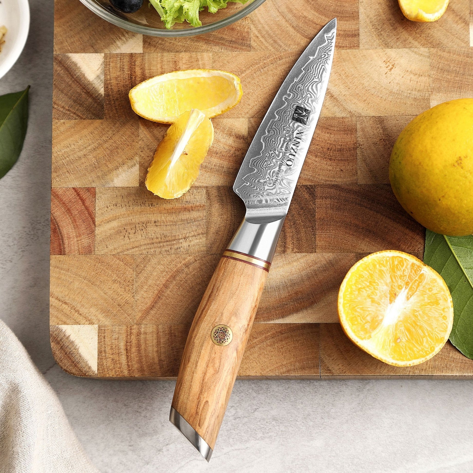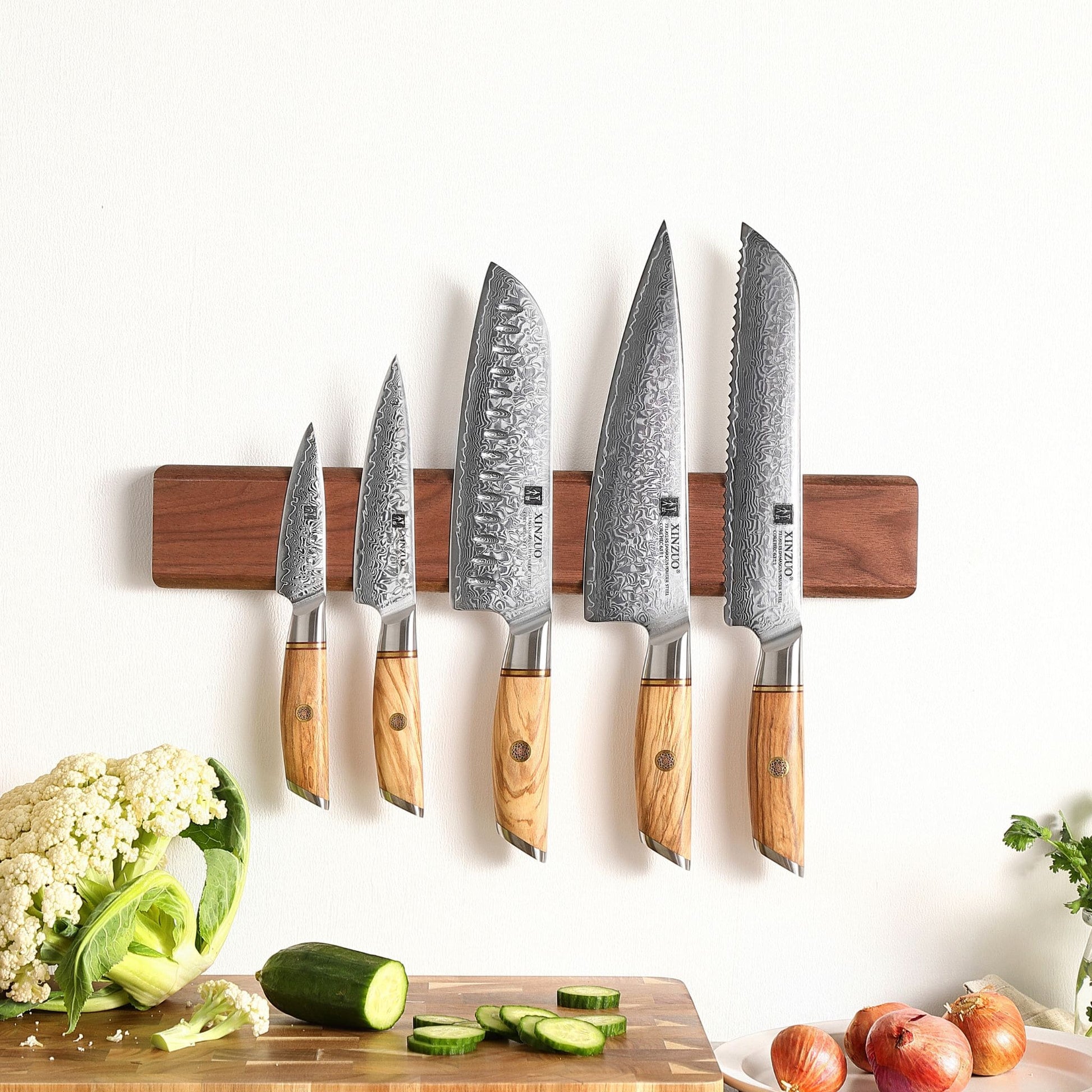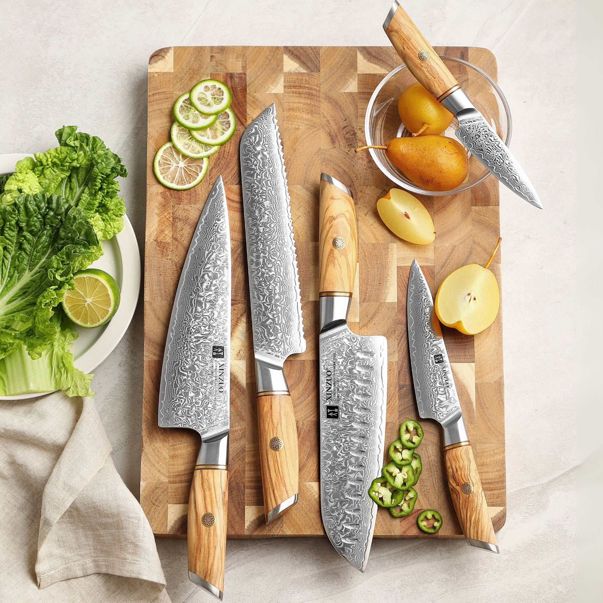 Die Griffe aus edlem Olivenholz sorgen für natürliches Handling und perfekte Balance. Das 5er-Set deckt alle Aufgaben ab – vom feinen Schälen bis zur harten Brotkruste.