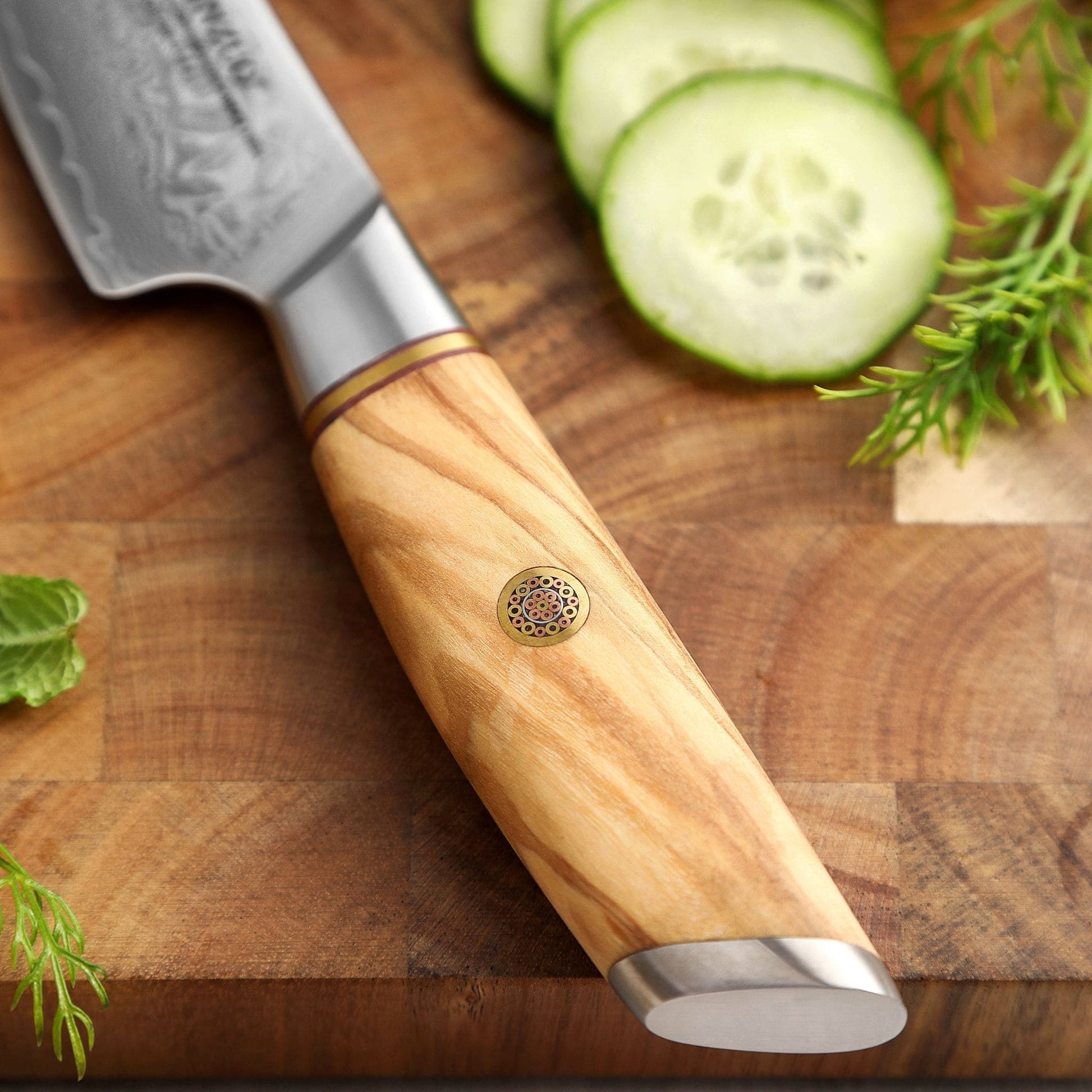 Der ergonomisch geformte Griff der Lan Serie sorgt für höchsten Komfort und optimale Beweglichkeit, sodass verschiedenste Lebensmittel mühelos geschnitten werden können. Gefertigt aus natürlichem Olivenholz mit leuchtenden Farben und einer klaren, eleganten Maserung, liegt er perfekt in der Hand. Das robuste Holz ist widerstandsfähig gegen Verformungen und Brüche und verbindet dadurch natürliche Schönheit mit verlässlicher Stabilität – für ein unvergleichliches Schneiderlebnis.