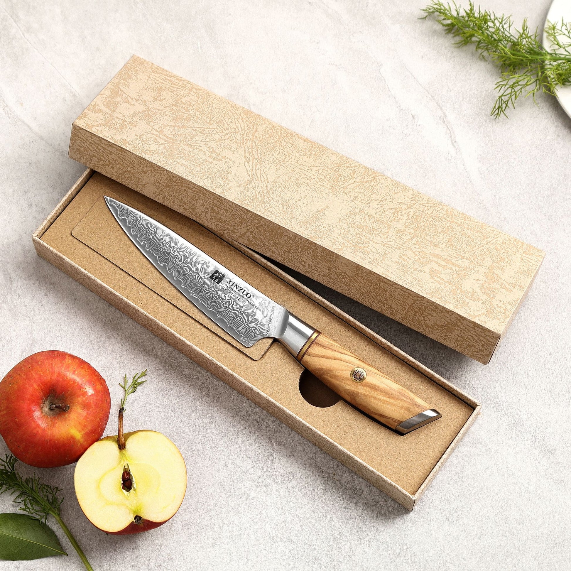 Der Griff aus massivem Olivenholz begeistert durch seine warme Farbe und die markante Maserung. In Zusammenarbeit mit Designern entwickelt, verbindet er natürliche Schönheit mit ergonomischer Formgebung. So liegt er ausgewogen und sicher in der Hand und macht jedes Messer zu einem funktionalen Schmuckstück.