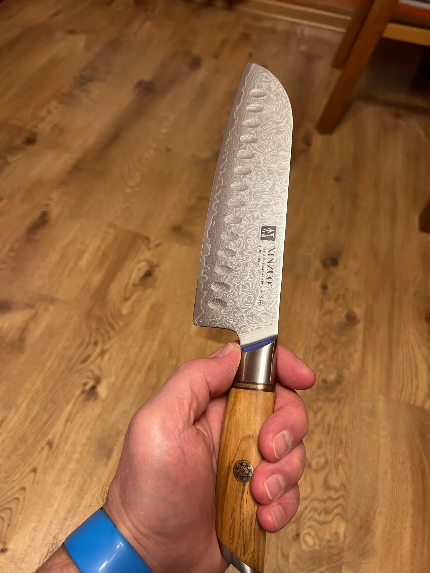 Das Messer kam schnell an, super verpackt in schöner Verpackung. Die Handhalterung passt gut in die Hand. Leider nicht mit super Scharfheit. Nicht einmal Haare auf der Hand. Ich verwende andere Messer, günstiger und scharfer. Wir werden sehen, wie es sich nach langer Nutzung verhalten wird.