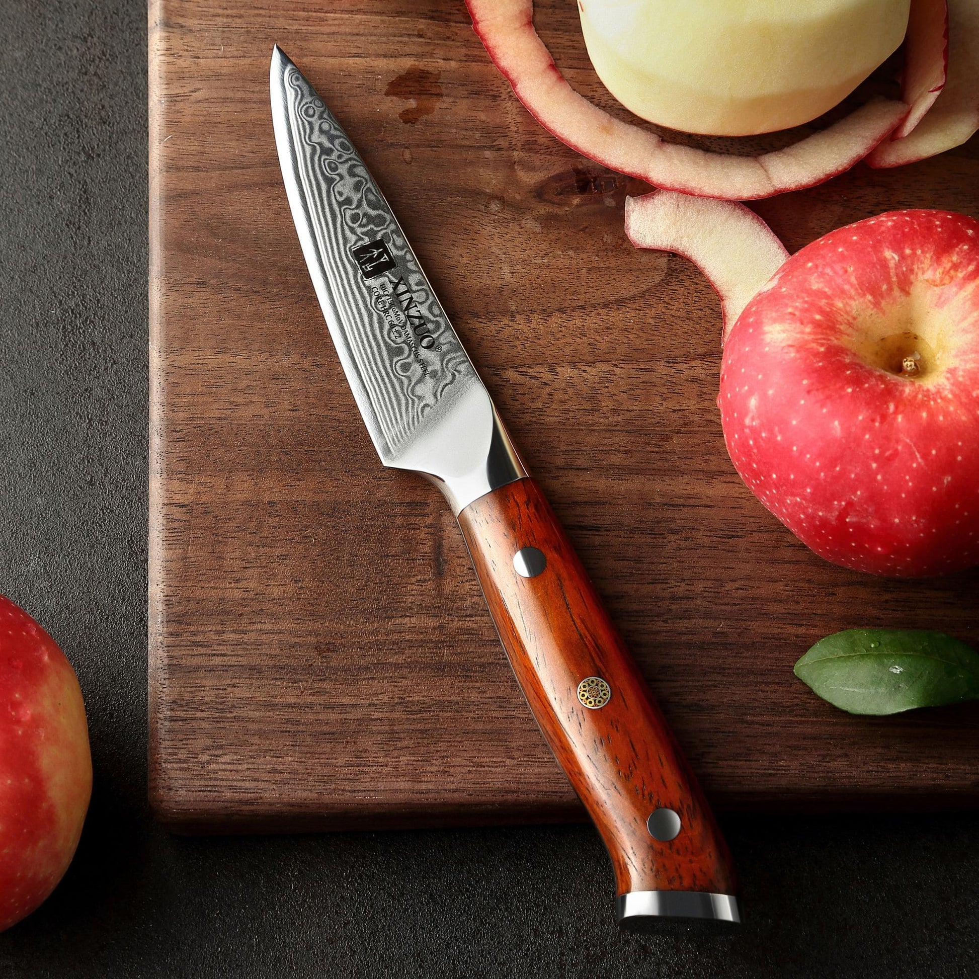 Die Yu Serie steht für zuverlässige Leistung und klassische Eleganz. Die Klingen aus 67 Lagen Damaststahl sind hart, schnitthaltig und werden durch modernste Vakuum-Wärme- und Tiefkühlbehandlung veredelt. Das Set deckt alle Anwendungen ab – von feinen Kräutern bis zur harten Brotkruste.