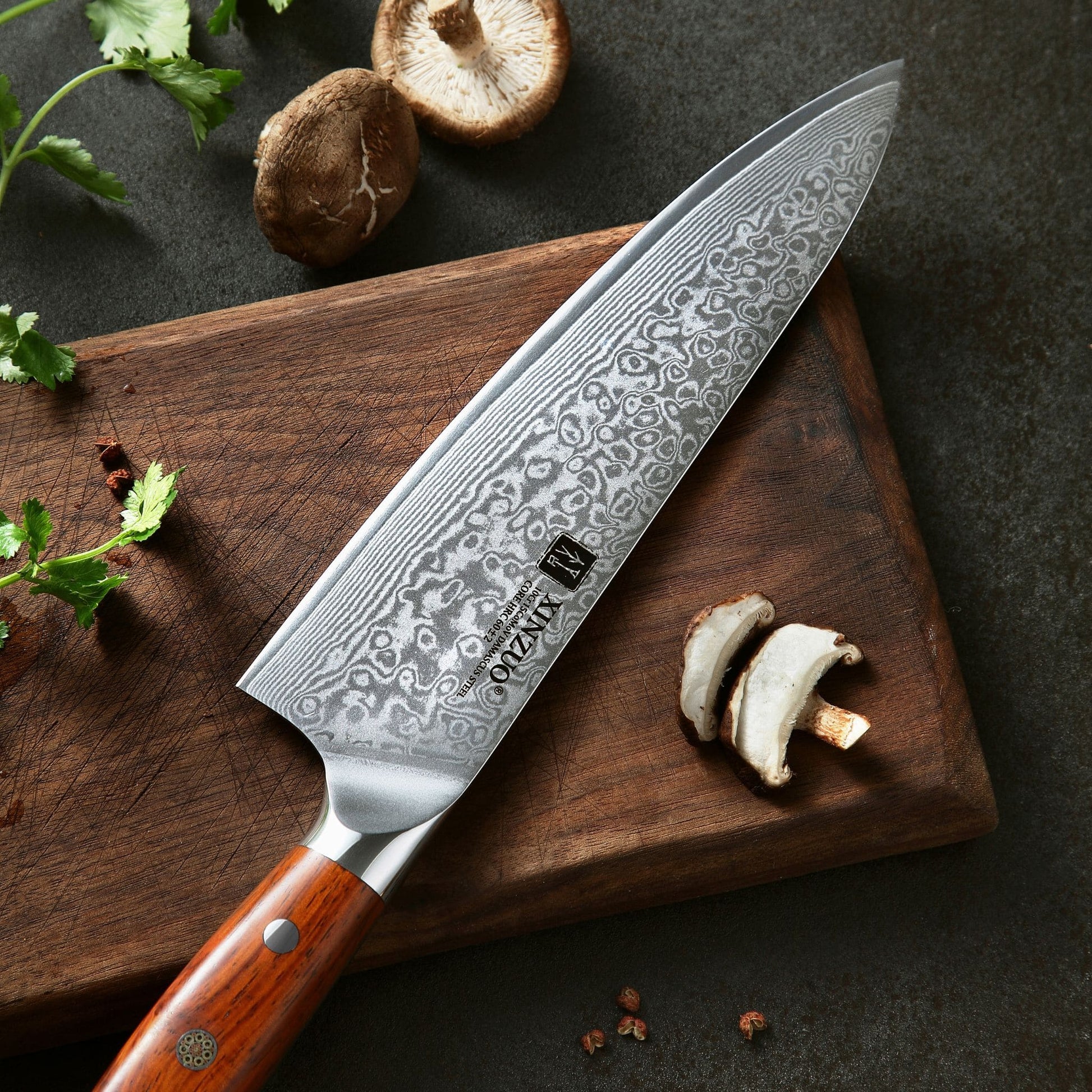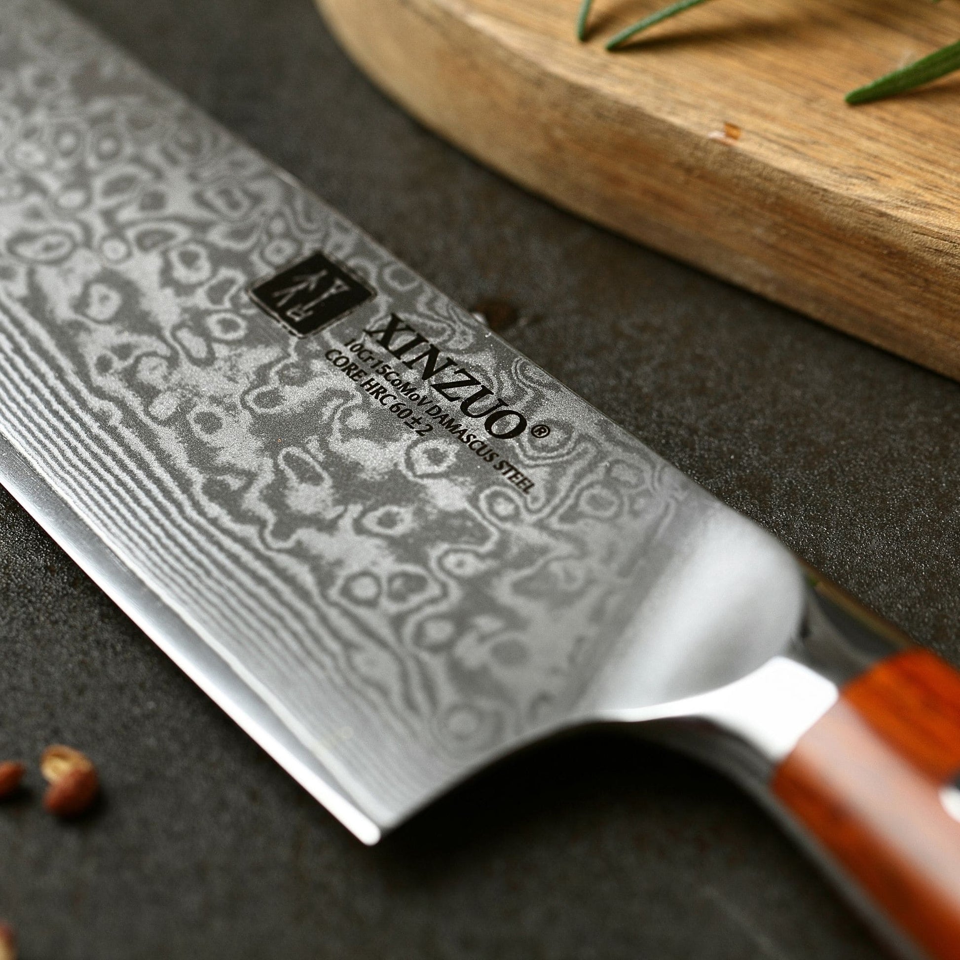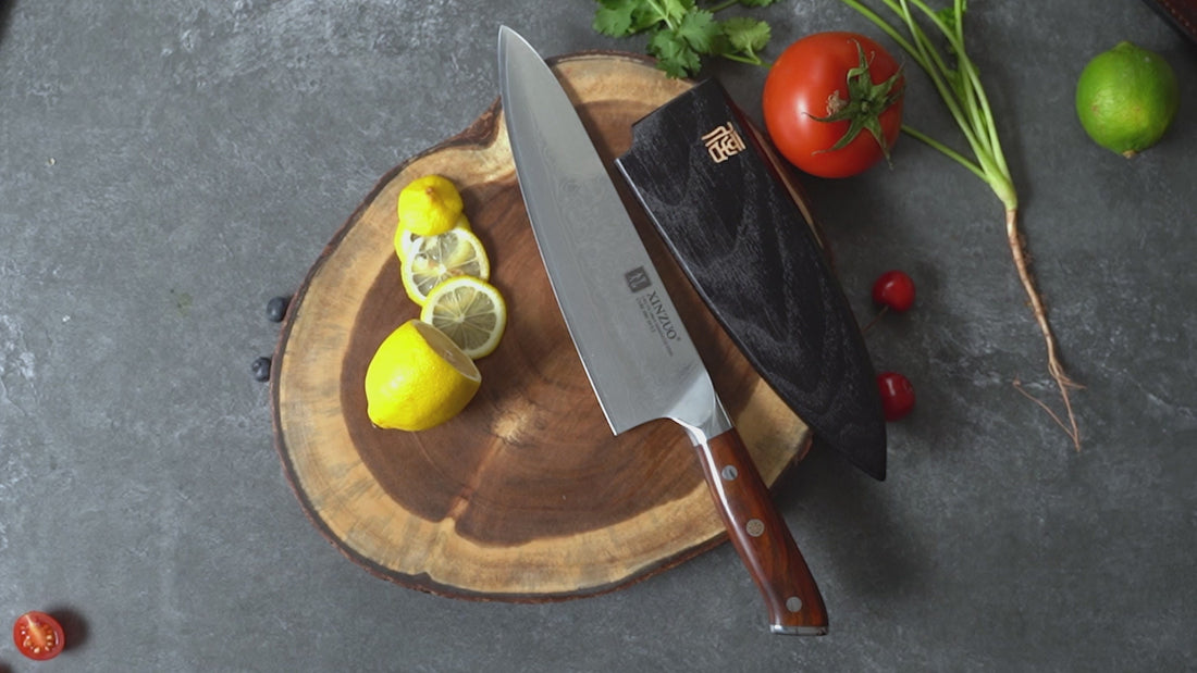 Way back in 2017 I was considering a major-brand 10-inch Japanese, Damascus chef knife at a cost of $600.00 but, largely due to my lack of worthy culinary prowess, including maintaining & sharpening, I couldn't justify it. But the prospect of owning such a masterpiece stayed in mind... In 2019 I spent around $200 on a German brand, for an 8-inch chef, and 7-inch filleting knife - both of which I was reasonably content, but not ecstatic, Then I experienced a Japanese knife first hand. It has a HRC rating of 56 +-2, and instantly showed me what a good knife actually is. It may be difficult to imagine, as I found for myself, but there really is little in comparison. Accuracy & effortlessness come to mind. Naturally, recollection of the original Japanese knife sprang to mind. I went "on-line window shopping," and finding the original Japanese knife, I marveled over it again...Then I stumbled onto XINZUO's version with hefty price savings & HRC rating of 62+-2. Harder & more delicate, just like a sports bike or car, is fabulous for what it's designed for, but more prone to damage if not used and maintained correctly. (Stay clear of bones and don't drop it. And it will "bite like a Viper" if you place your fingers within its reach. It's a serious culinary tool.) The beauty in craftsmanship yells volumes. But I believe it's greatest asset is the control it provides - even in small hands, such as mine. It's considerably lighter than my 8-inch German knife, contributing to safe, accurate slicing and dicing - to transparent, minuscule sizes if required. It is literally "razor sharp" out of its beautiful box. (I tested in on my forearm.)While I have a dedicated Japanese stone set for sharpening, I'll be using the leather strop to maintain it's beautiful, single-taper, hardened edge.The XINZUO 10-inch chef knife is a shear delight to experience - aesthetically and physically. Any slightly serious home cook, or professional, deserves such a wonderful tool. I only wrote this review, with genuine parse, hoping it may save like-minded cooks from wasting money on more expensive options - as I have.