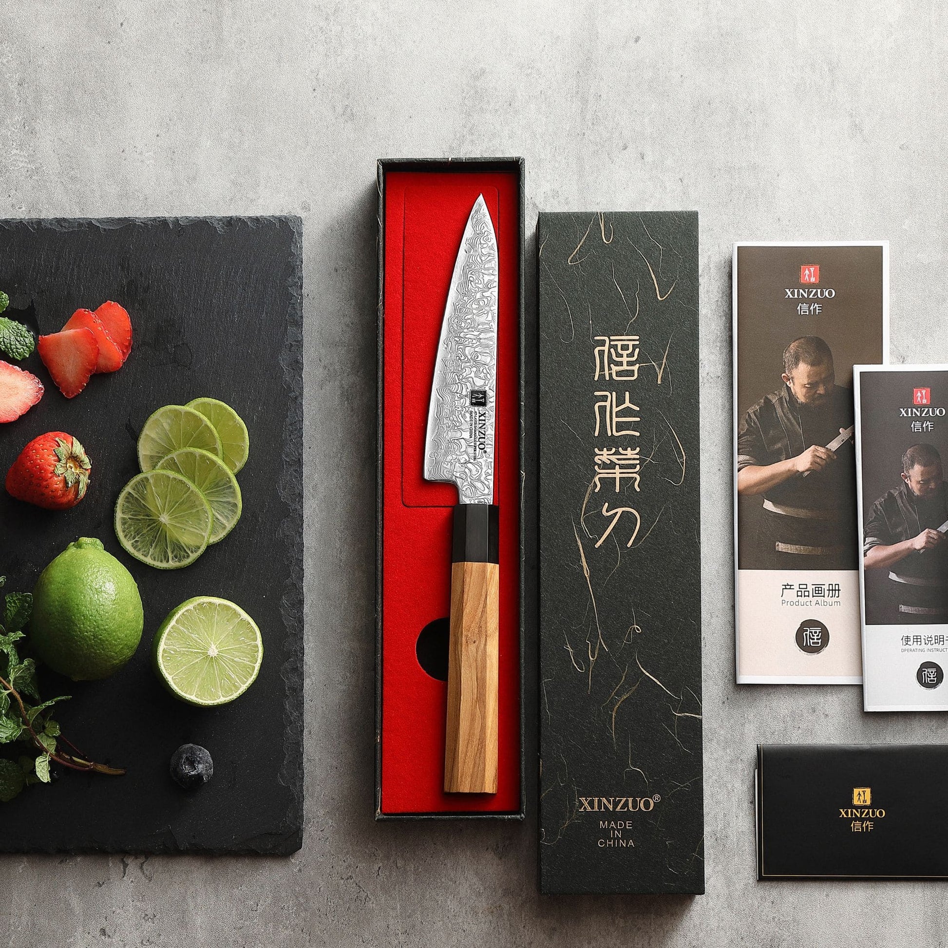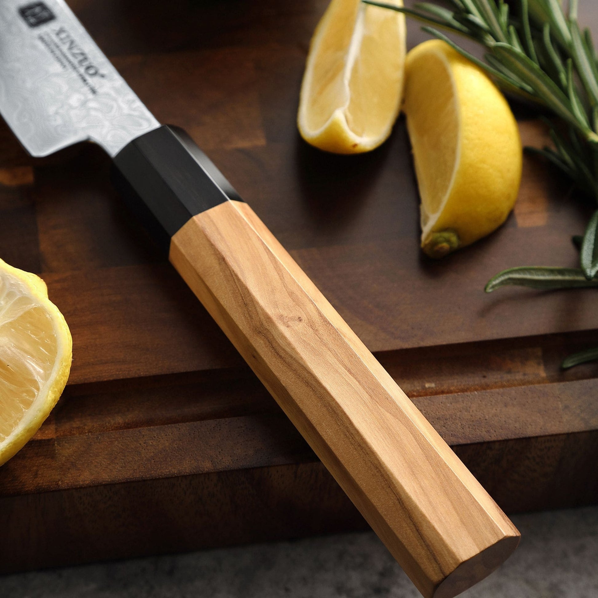 - ✔ Japanischer Griff aus Olivenholz und Büffelhorn – edel und präzise